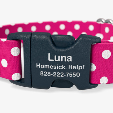 A personalized, engraved buckle promotes the return of your dog in the unfortunate event that they do go missing. It has been reported 33% of all dogs will go missing at least once throughout their lives. Better safe than sorry, we say. |